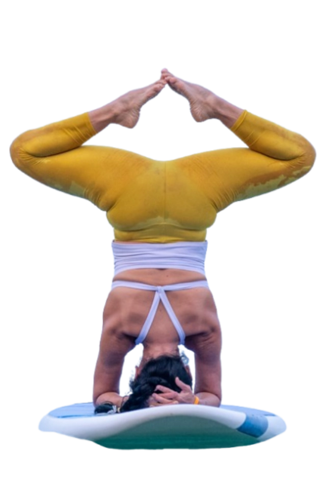 Desafía tu equilibrio y fortalece tu cuerpo practicando asanas sobre la tabla, fusionando la energía del yoga con la calma del agua.